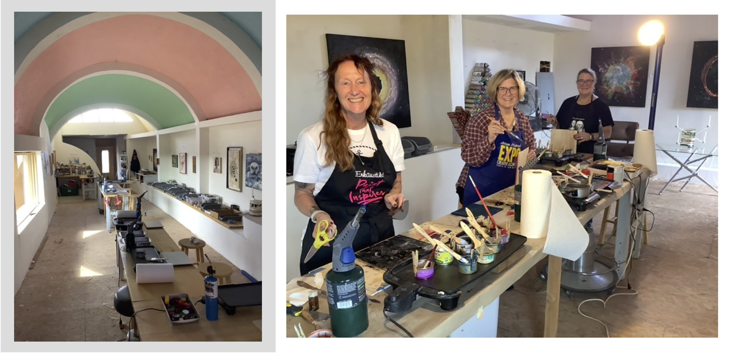 Adult and child classes in creating Encaustic art.